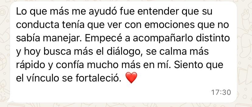 Algunas familias notan pequeños cambios desde los primeros días, sobre todo en su propia reacción. Otros cambios se construyen con la práctica y la constancia. No es un método rápido, es un proceso consciente.