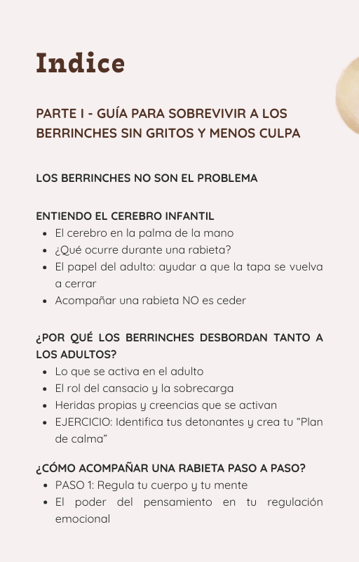 El material es tuyo para siempre. Puedes volver a leerlo cada vez que lo necesites, en distintos momentos de la crianza y según la etapa que estés atravesando.